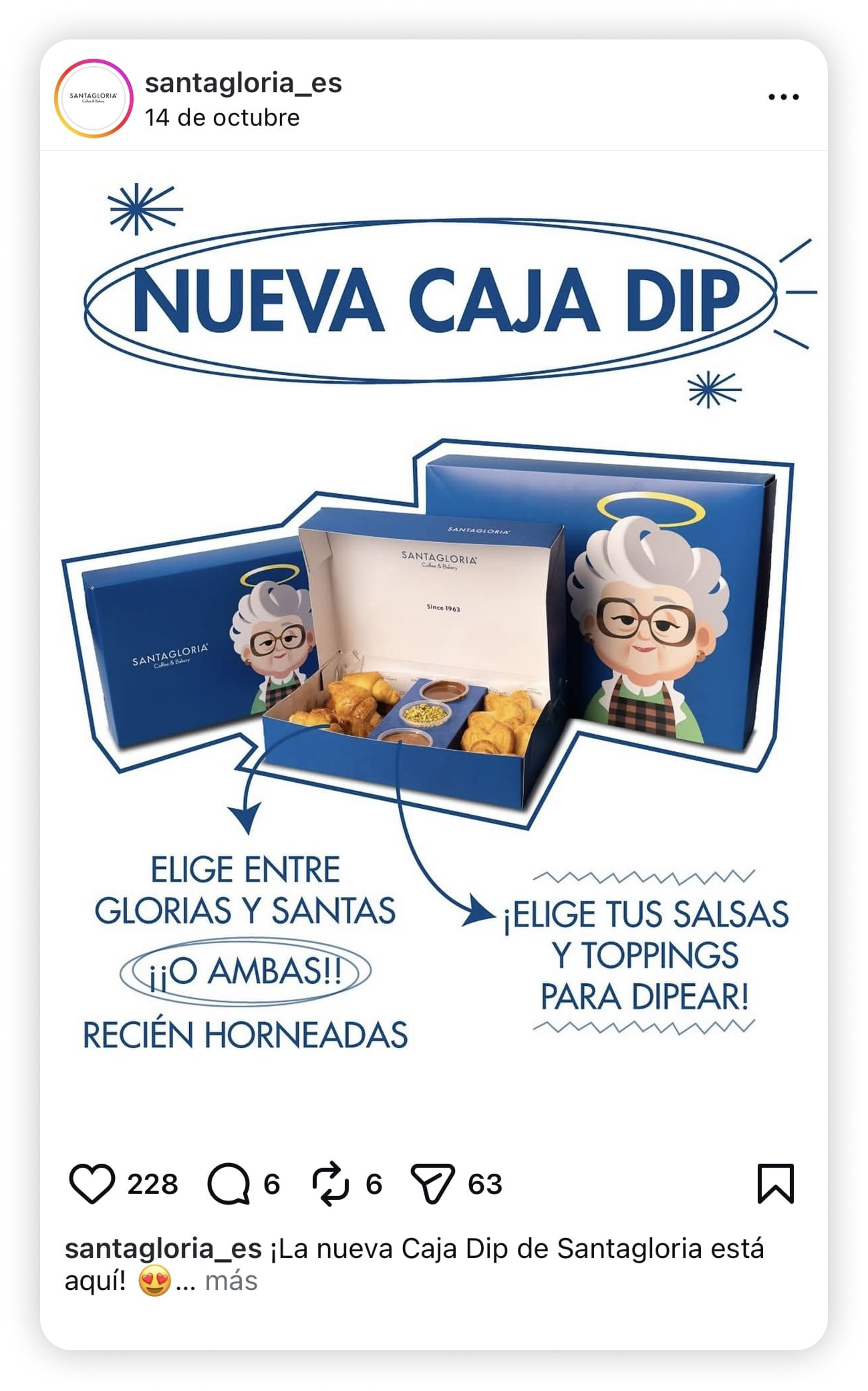 En Santagloria hemos querido darles una vuelta para que puedas disfrutarlos de una manera diferente, más divertida y pensada para compartir. Así nacen las nuevas Cajas DIP de Glorias y Santas, una propuesta que combina nuestros clásicos mini croissants con salsas y toppings para mojar, combinar y experimentar a tu gusto.