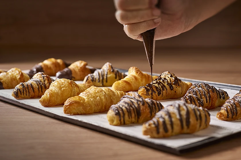 Ni, por supuesto, la mujer. Por eso en Santagloria celebramos la belleza de lo hecho a diario más allá de nuestros panes. Con nuestra bollería dulce, por ejemplo, que también horneamos cada día inundando nuestros locales de un delicioso aroma, que anticipa lo que está por venir. Después la cubrimos con exquisito chocolate, con toppings de almendra o con azúcar glass, la bañamos en almíbar o la rellenamos con crema de pistacho o de avellanas. Y de esta forma estamos seguros de servir algo único en textura, sabor y presentación.